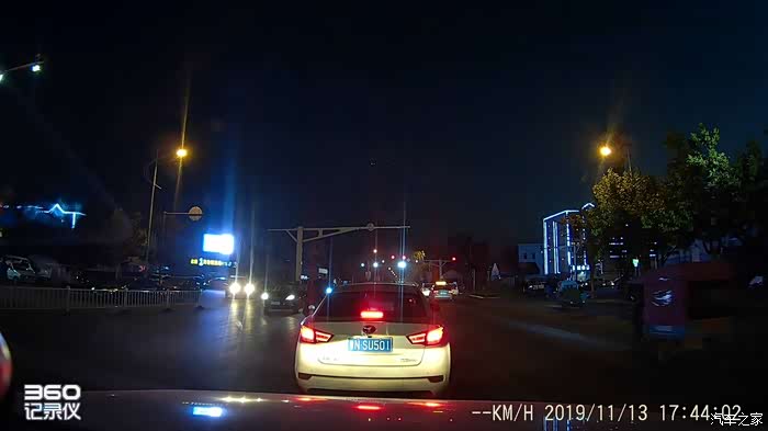 夜晚实拍,这个看上去就有点太亮,导致车牌反光强烈