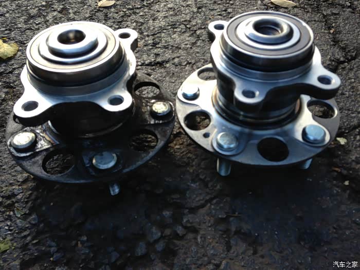 为了检测轮轴状态,我把车子前段架起来,挂D挡空原地踩到100公里的速度,没有听到前面传来太大噪音。看来噪音主要来自后面。所以决定更换后轮轴承。我买来了一对儿后轮轴承,60多美元,美国牌子,中国造,副厂货。估计不能像原厂货那样耐用,不过这车估计也就再开个一两年就会换掉了,也没必要搞那么好的。原厂货一个的价钱都能买我这两对儿的了。
