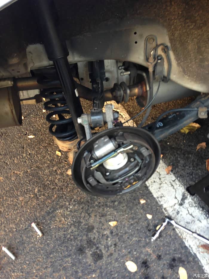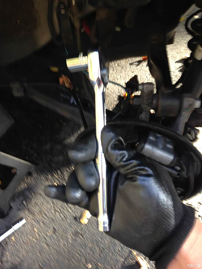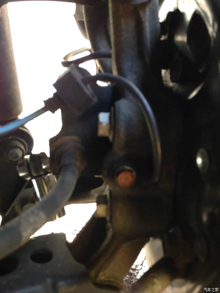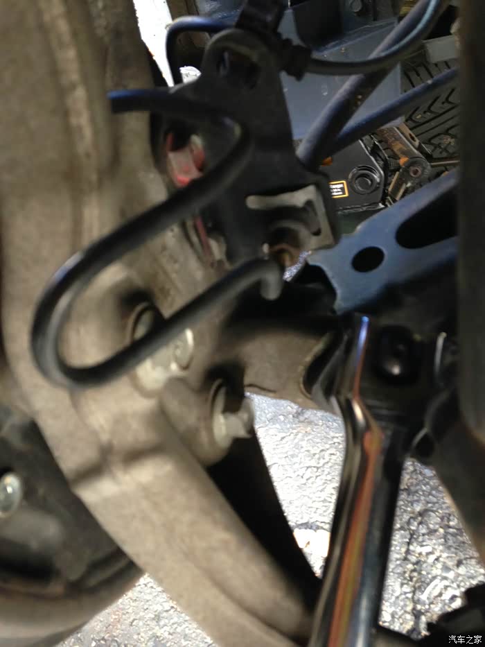 这边要先把ABS传感器线挪开。方便拆卸这边两个螺丝,这四个螺丝都是14mm的。