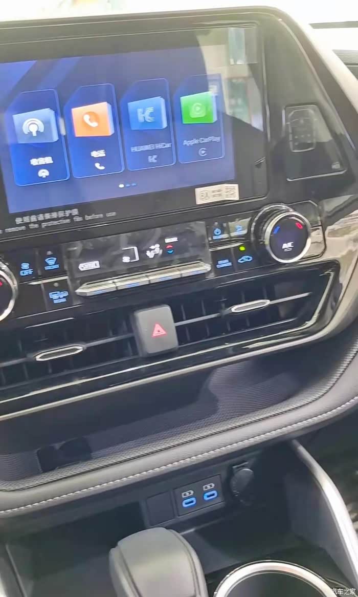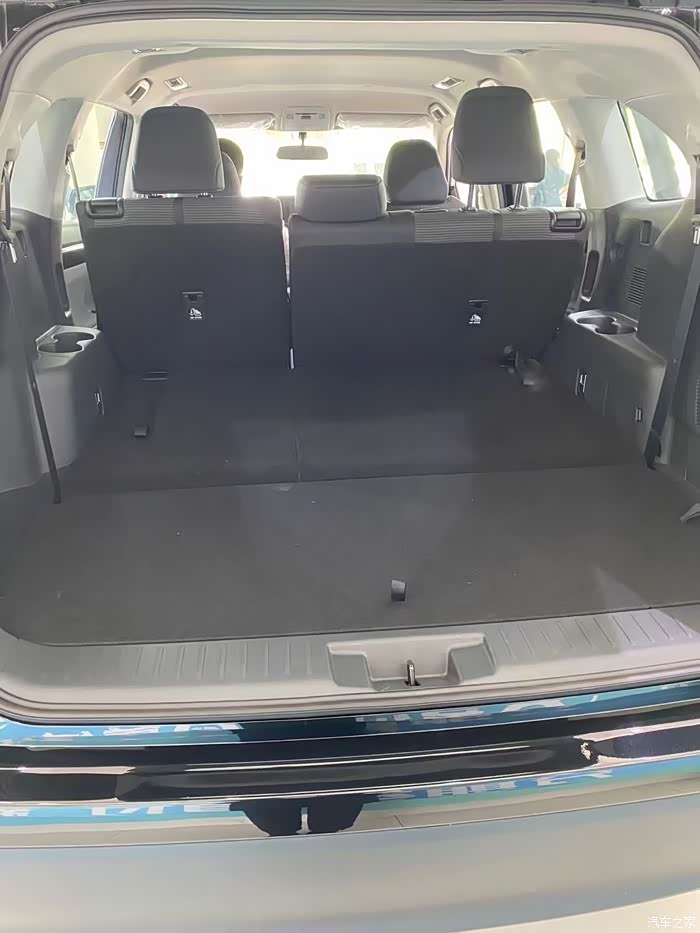 内饰也是焕然一新啊,说好的全液晶仪表盘也没看到,低配就是中间信息显示比威兰达大一些,右边是7寸的导航屏吧,手动座椅,都双擎了还不是全系电动座椅,不过这个织布座椅坐的感觉是真舒服,特别软,跟沙发一样,哈哈,坐上去你都不想下来,后面空间也大了,第三排目测座椅是长了,椅背也高了,头枕也设计过了,放倒的时候自动折叠,空调出风口没有变化,这个配置没有天窗。前后各两个充电口。