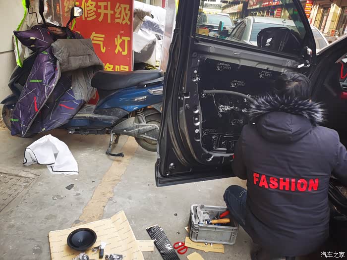 考虑到汽车音响改装前门是主声场,后门一般是辅助,而且除非是原车机自带DTS解码才会出环绕声效果,通常汽车音响主要是立体声氛围,所以只改了前门两分频套装喇叭,而要让喇叭充分发挥出效果,营造出主驾位的皇帝位,一个DSP功放是必不可少,平时又喜欢听一些流行音乐+DJ,加个低音炮刻不容缓,选择的是最不占空间的备胎低音炮,为了让喇叭出声效果接近音箱,必须营造出密闭环境,于是四门隔音少不了,以上都是自己联系本地专业汽车音响改装店谈好工时费直接安装。