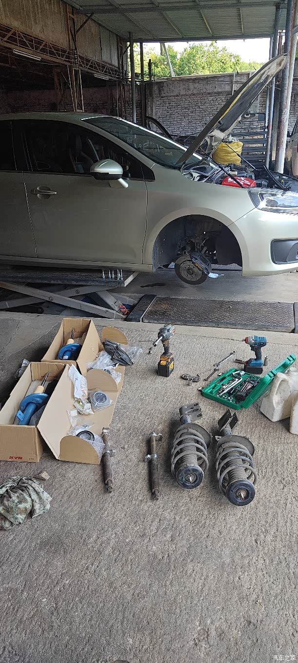 自己动手把旧避震卸下来,师傅忙着弄别的车了