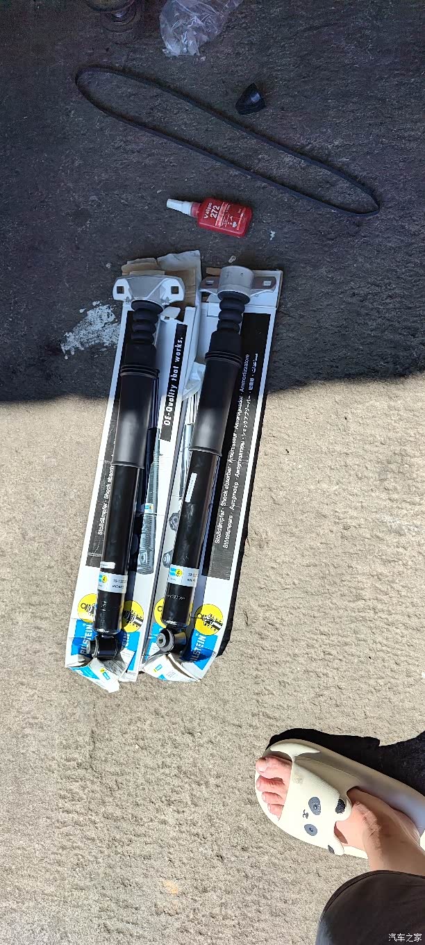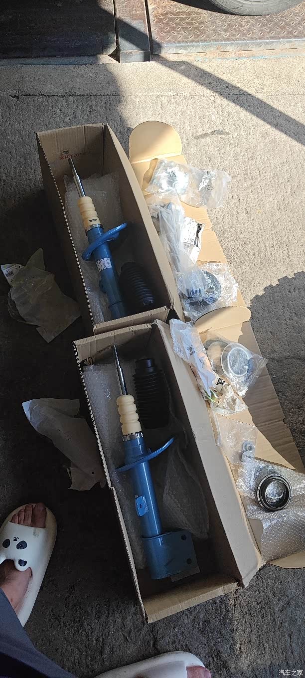本想全换蓝桶的,可惜停产没货,网上找了两三天才找到一家实体店有前面两支库存。后减震实在找不到所以就买了倍适登b4。也是比原厂阻尼大的系列产品。