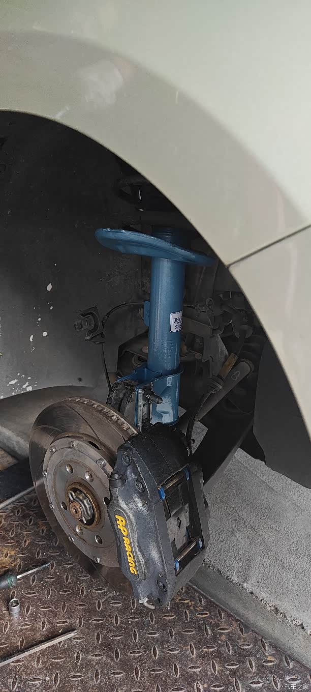 装好天快黑了,就没去做四轮定位了。简单路试了一下,由于我的原车避震本来就没坏,只是前轮塔顶胶异响。所以换上这套避震对比原厂的状态没有什么脱胎换骨的感觉。也是时间有限,没怎么激烈驾驶。蓝桶的阻尼比原厂大那么一些些,回弹阻尼比较拉得住车身。b4的阻尼竟然比蓝桶还要再大一些,后屁股基本上没有任何多余弹跳,不论是压缩还是回弹都是非常干脆利落。因为阻尼大,所以体感上也变硬了的。前弹簧还是原厂,大概4指紧的高度。后弹簧我换的是奥迪TT四驱版的原装后弹簧,3指紧的高度。(城乡结合跑,直接买短簧两支高度太低了,虽然好看但是不符合用车环境。)前高后低有利于把车辆重心后移,本身前驱车发动机就在前轴前面,前面太重。弯道、制动影响操控。