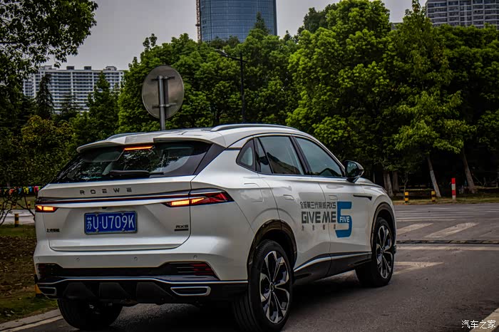 侧车身线条饱满 ,看着也比较大气尾部也采用了贯穿式设计,辨识度还是非常高,尾部也没有使用双师LOGO设计,采用的是英文字母代替“ROEWE”