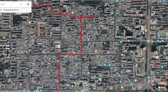 红线就是我在回民街开车走的路线,历险,也是没谁了。途径好几个清真寺,怪不得人那么多。