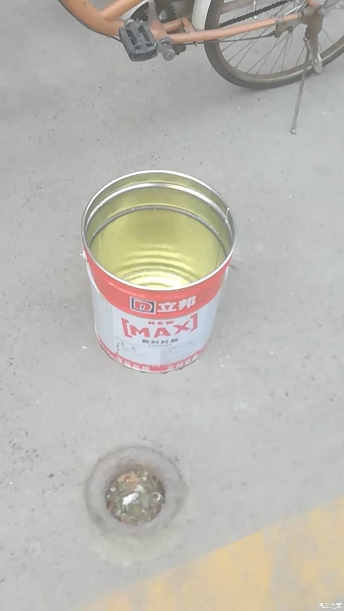找了一个楼下装修刷大白的空桶,刷干净了。为啥接废油的桶还刷这么干净?不想弄一手涂料