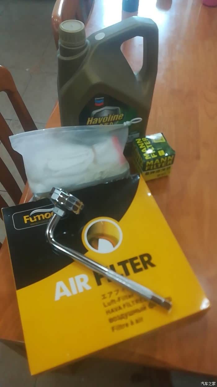 准备的一些东西,雪佛龙金富力5w30全合成机油,上次途虎活动赢得奖品,小众无假!曼牌w67/1机滤,福茂德空气滤芯,日产专用机滤扳手,手套是为了防止松油底壳螺丝和机滤时弄一手油