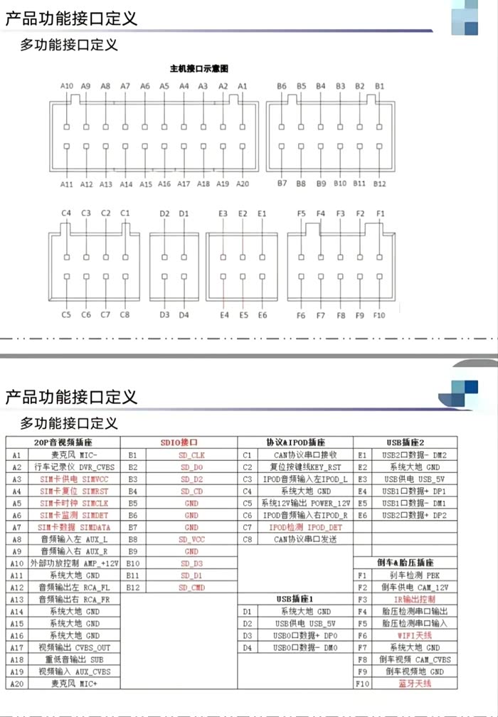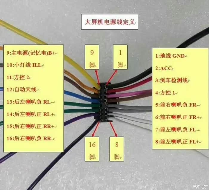 安卓大屏的电源插头针脚的定义,像3脚就是倒车检测线,接