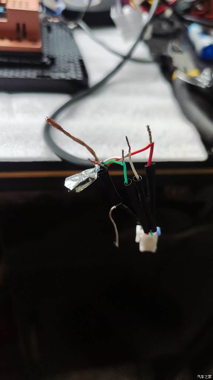 倒车可视梅花接头,家里找的电视线头剪下来,接尾线10针摇头里的两条线,零元