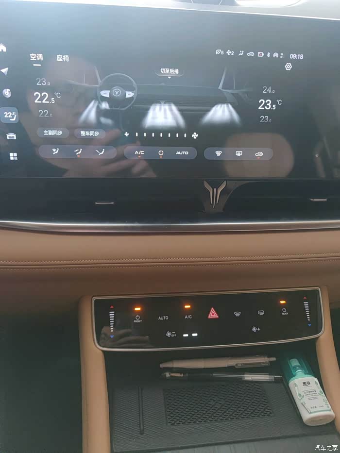 大早上的温度还行,空调前后都是22.5度的冷空调,都是两档风。毕竟后排还坐着人,也要给人开空调不是。