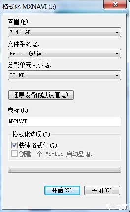 切记 一定要 选择 FAT32 格式 !! 快速格式,点开始 !