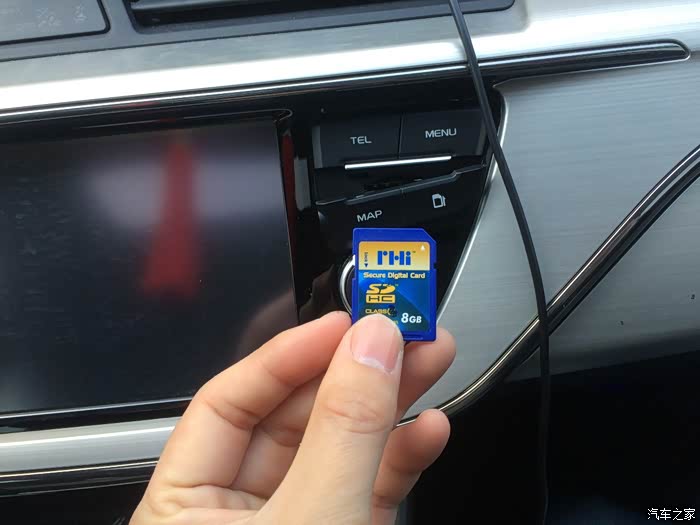 很多车友不知道在哪插入内存卡,屏幕右边MAP的位置,这个位置里有内存卡,是原装导航的。