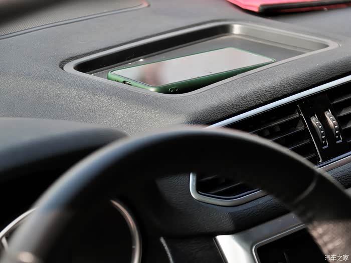 中控台上面有一个开放式的储物平台,底部也做了防滑处理,用来放手机还是挺合适的。