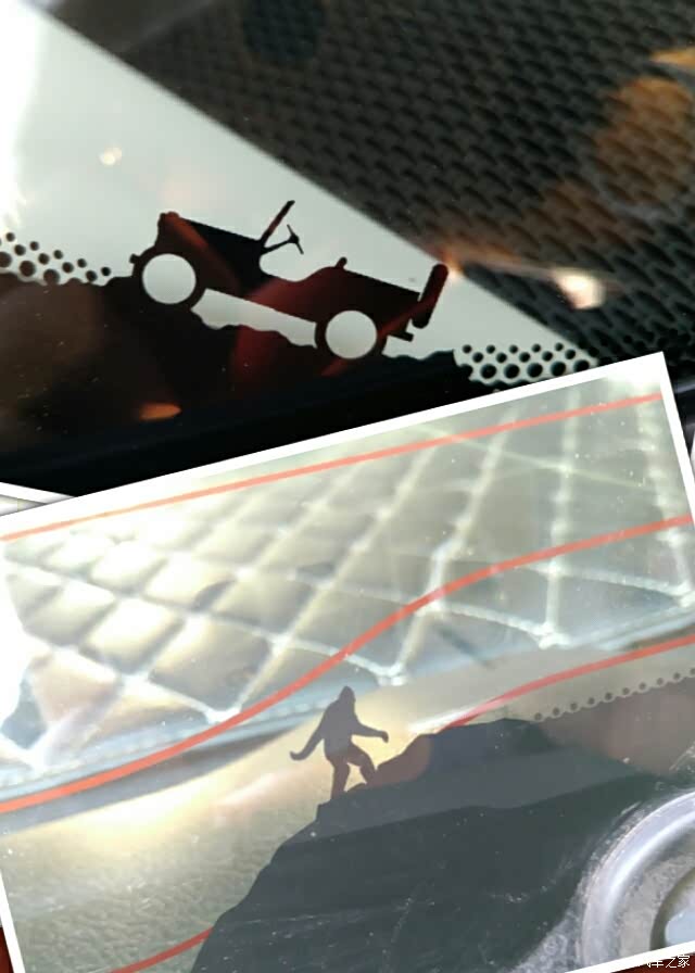前挡风玻璃上的小车和后挡风玻璃上的爬山小人细节!非常喜欢