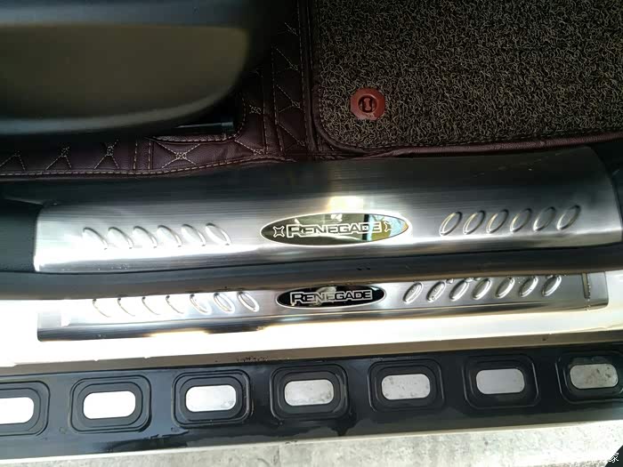 加装的内外不锈钢拉丝门槛条(后排)