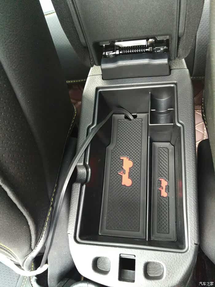 加装的扶手箱储物隔层,很实用!