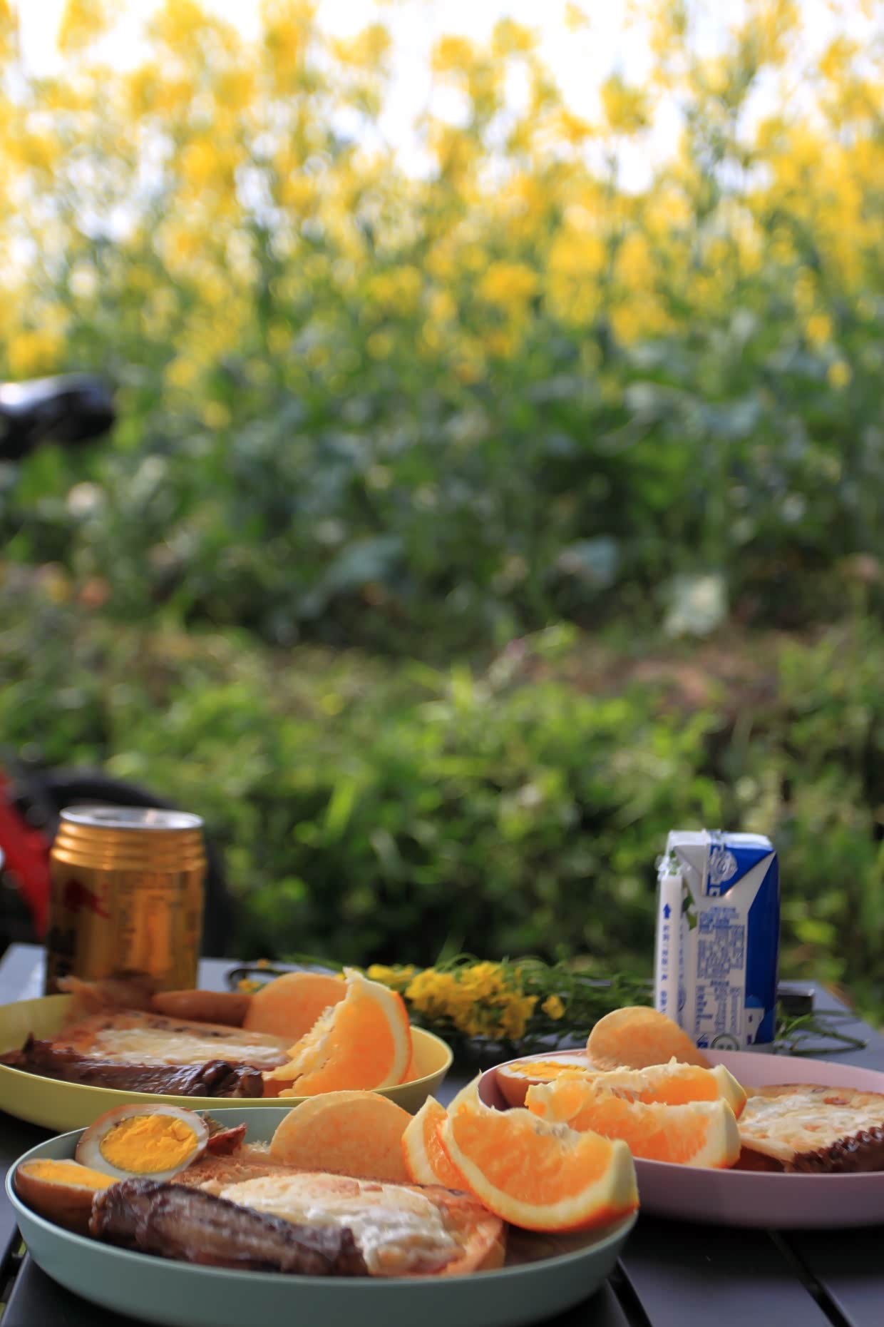 花田露营,浪漫野趣, 选一片远离蜂箱的田埂,铺开帐篷或天幕,就成了临时的“花间居所”。仿佛置身童话世界,闯入眼帘的便是无边无际的金黄花海,鼻尖萦绕着淡淡蜜香。 自驾导航“邛崃两河村”,成都出发约3小时, 营地选择:避免踩踏农户种植区,建议提前询问村民可否搭帐篷,我们去只收了一个停车费10元,这也相当的良心了。 装备建议:防潮垫必备(花田露水重),食物密封防蜂,白色或浅色衣物更出片。 两河村的油菜花季短暂而惊艳,适合想避开人群、沉浸式感受川西田园风光的旅行者。在这里,时间仿佛被调慢了节奏,每一帧都像在油画中徜徉。