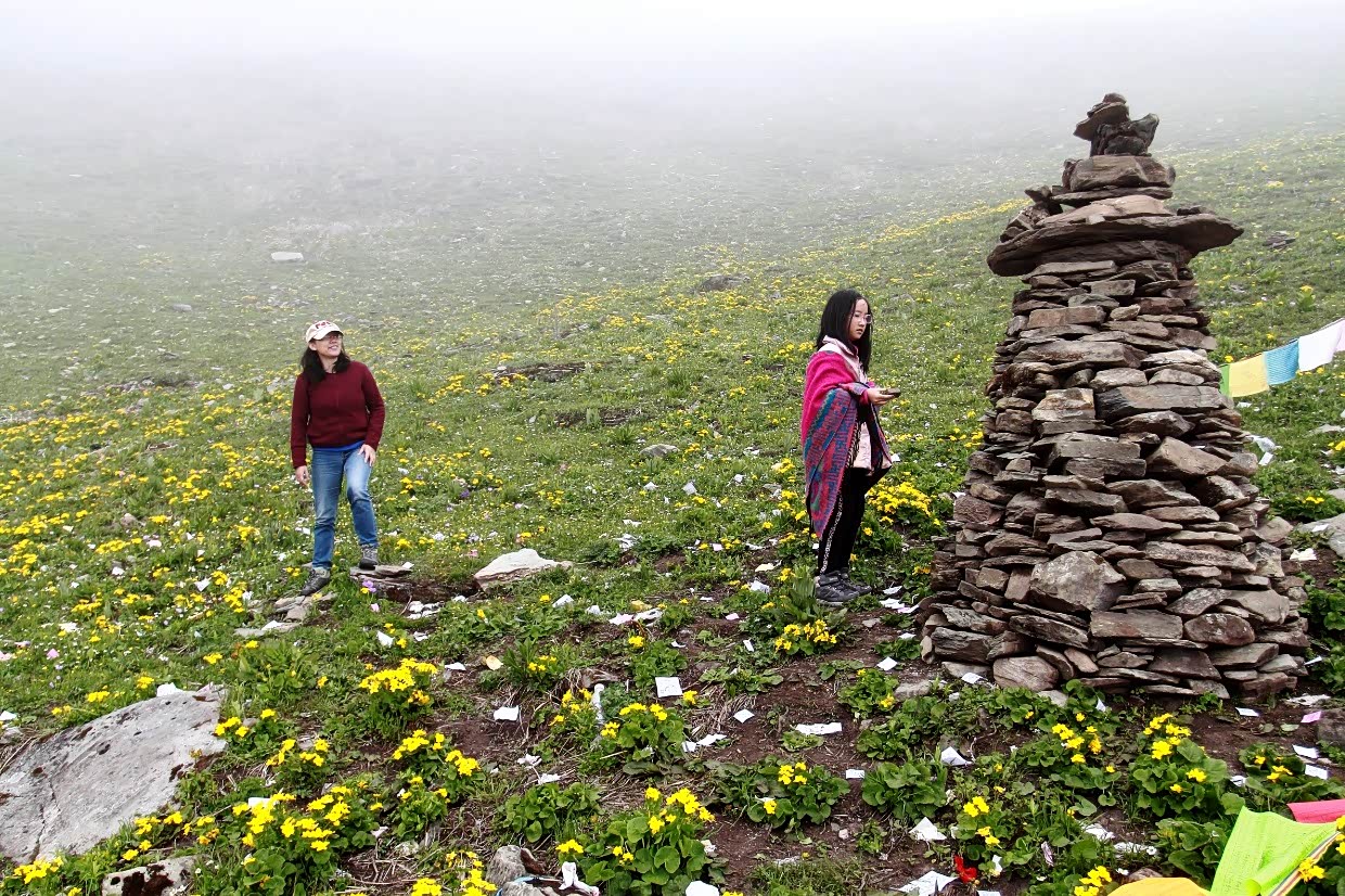 景致:六月高山杜鹃泼红溅紫,九月草甸金黄如梵高画布,远处雪隆包雪山终年白头,宛如沉默的守护者。