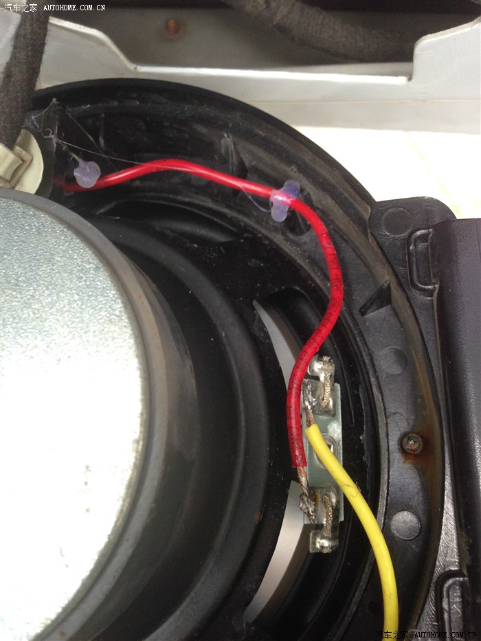 哈哈,开个玩笑,上喇叭照片,喇叭固定只有一颗螺丝,拧掉螺丝以后用手一拉就下来了,固定垫圈是某宝买的,带原装插头,不过这个插头插针有点细,最好买来后自己弄上点焊锡,不然会接触不良的,我已经中招了,此次作业就是建立在我拆门板修接触不良的基础上的……