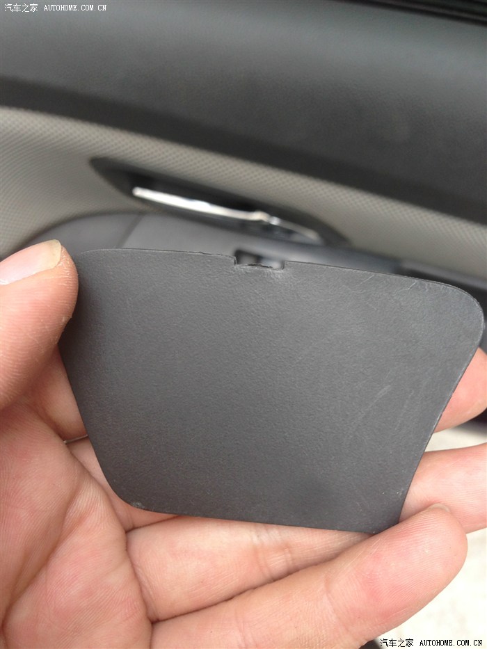 第二步,拆掉门拉手里面的盖板,找个一字螺丝刀卡到图上缺口那里稍微一用力,也掉了,完全没有技术含量……