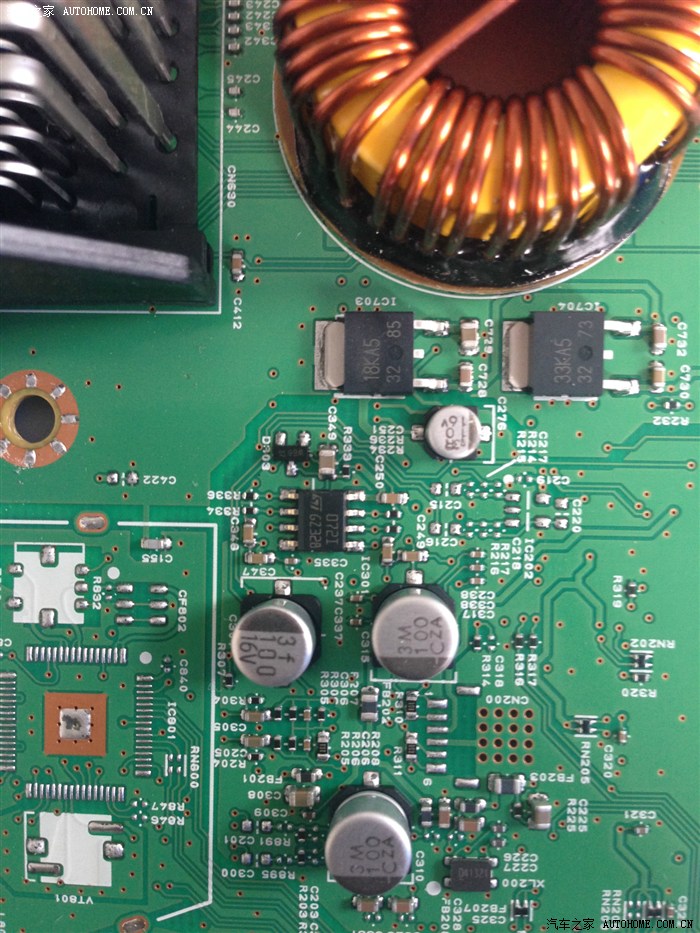 3、原车主机改造部分:科鲁兹原车主机还是不错的,采用DSP解码,整体做工也不错,但是功放和运放就比较弱了,功放是TDA7562,这个功放是带总线控制的,目前没有替代方案。运放芯片是ST072和ST074,效果一般。运放替换方案为:ST072替换为opa2604au,ST074替换为opa4134ua。原车电容为25V 2200uf,替换为10000uf。更换方法也比较简单,手艺高的拿风枪十分钟就能搞定,新手买个电烙铁去网上学习下堆锡拆芯片方法也能搞定,切记更换过程中要注意防静电,低端烙铁要用余温进行焊接,焊接过程注意给芯片降温,切记切记!!!!