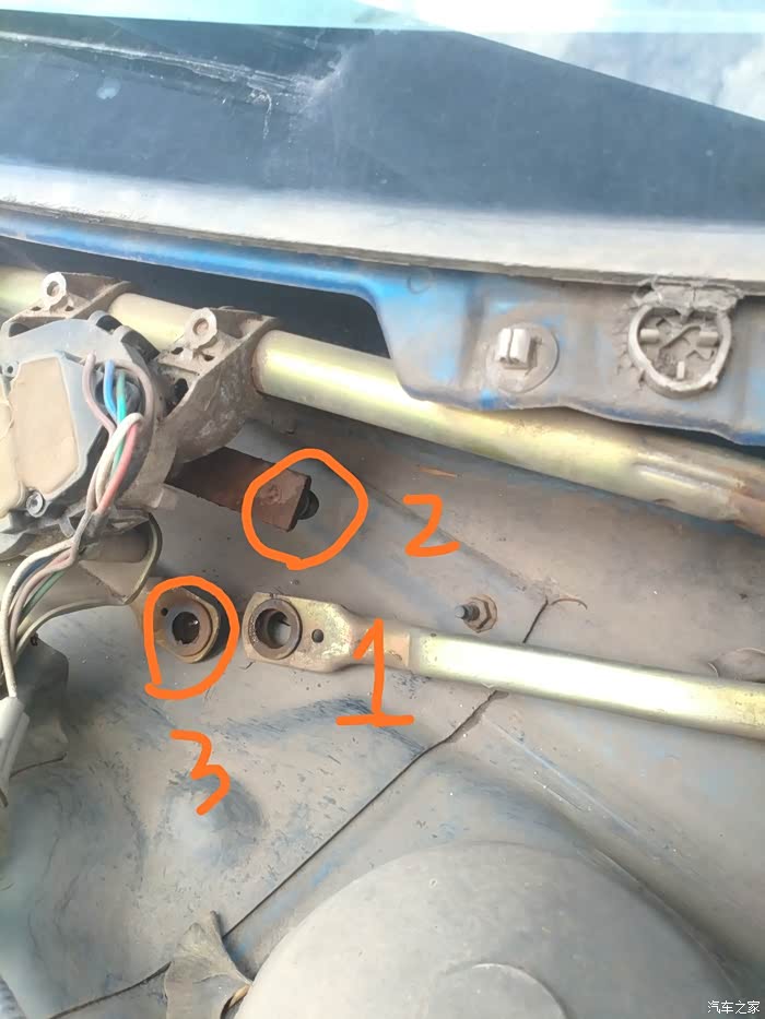 昨天雨刮器突然不工作了,两个都不动,但是还有转动的声音,说明电机没问题,今天打开来看看是什么情况。