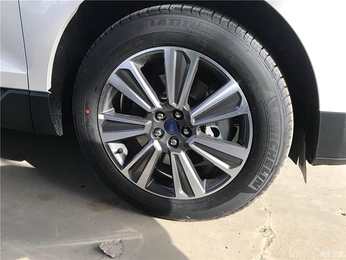 米其林轮胎,规格是245/55 R19。轮毂拉风,放射式设计。锐界的胎噪不大,米其林轮胎的静音效果比较好,新车开回来,发现轮胎上有很多细碎的石渣,强迫症受不了。