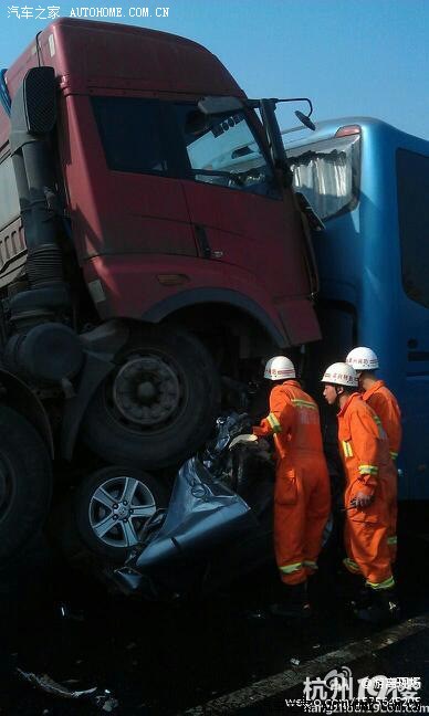 杭州交通918:网友@游离现场 爆料:乍嘉苏高速苏州方向嘉兴段新塍出口不到,9车相撞,其中一辆马6轿车被压在货车下已不成样~