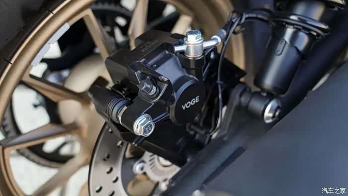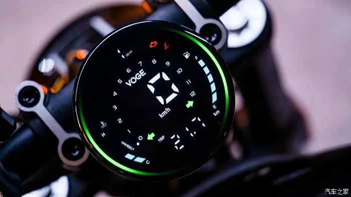 刹车方面采用前对向四活塞卡钳,后减震则采用较为普通的单活塞卡钳,当然在制动效果上也已经非常够用?,双通道ABS和TCS牵引力控制也有搭载。另外,值得一提的是这一次无极的仪表也是复古圆型,外圈灯环夜间非常漂亮。