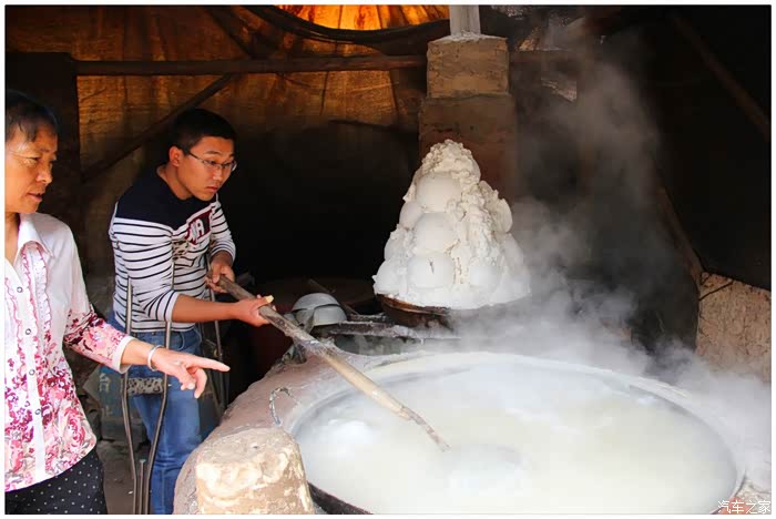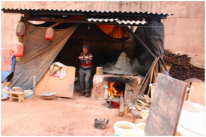 下了观景台沿着路牌走,还没有到诺邓古村,我就看到了路边有人家在烧柴,锅上面堆着白花花的盐巴。