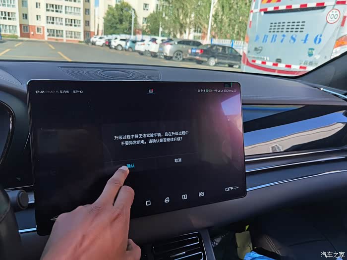 接下来的操作就更简单了,在弹出来的画面里面一直按照操作引导,直接点确定,就可以了,然后就是一直等待升级界面,进入升级程序以后,以后的操作完全是自动的,就不再需要人工干预了,中控会自动完成升级全过程,但是在升级的这个过程中,我们是启动不了车,也操作不车辆的功能,车辆在升级过程中只有一个功能是能正常使用的,那就是锁车和解锁车辆。