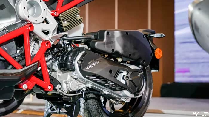 搭载的200cc单缸水冷4气门DOHC发动机,装备马瑞利欧五电喷系统,最大马力为19.8hp(14.6 kW)@8250rpm,最大扭矩在17N·m (12.5lbs-ft) @6250rpm迸发,属于高转机器。