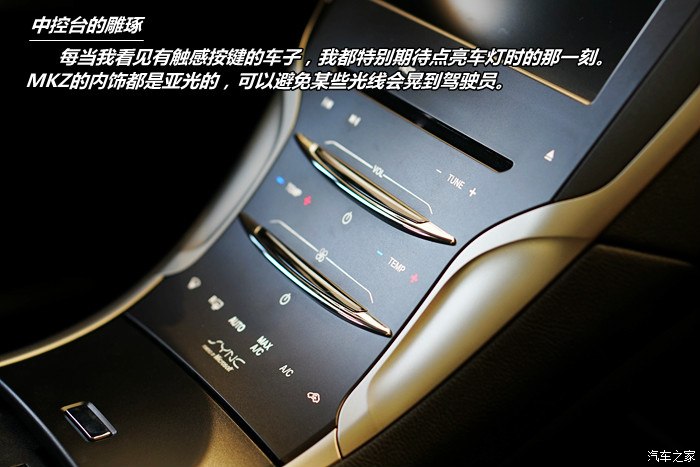 ▲MKZ的操作面板,完全的触摸按键,刚刚上手时需要适应。
