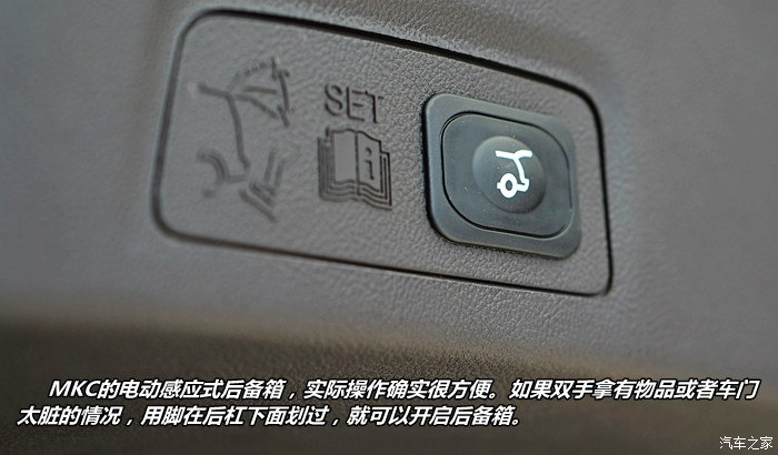 ▲MKC后备箱开口很大,并且是电动开启。后备箱有独立电源,并且后备箱挂钩等细节用料十足。