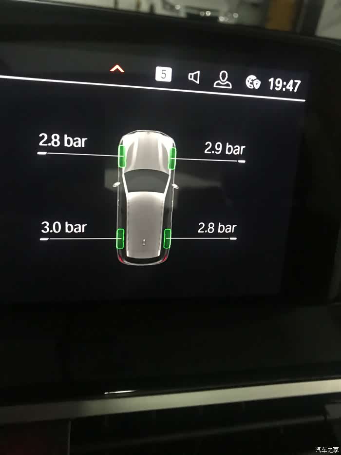 刚提车时候的胎压,有点高,后来手动放了一些,现在2.5bar左右。
