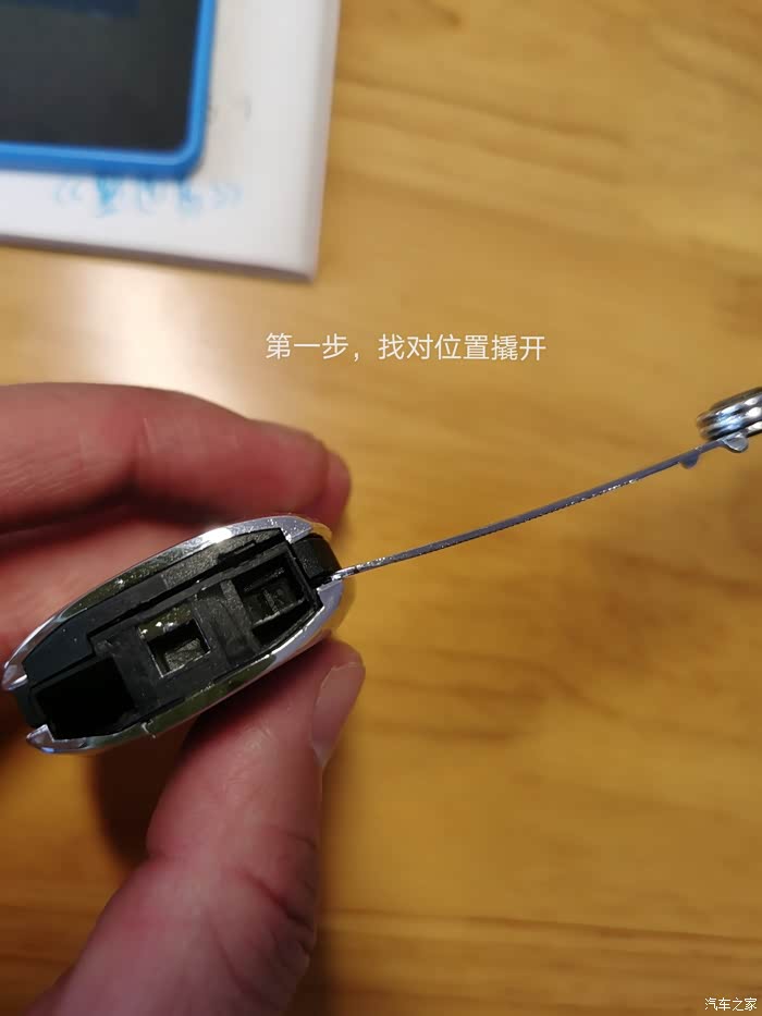 开始更换钥匙,首先将钥匙壳撬开,看到可撬开的位置