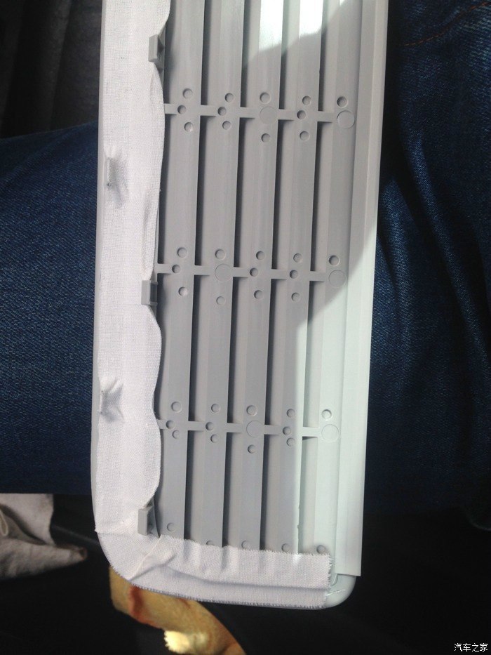 在路面比较糙的地段行驶,天窗附近总是吱吱的响,声音虽然不大,但听着非常烦心,我对这种声音也太敏感了,实在受不了,气急了就使劲拍两下,不过还好,确定是天窗拉板发出的声音,原因是发出异响时手按住拉板的地方,某个位置,异响没了,这下就好多了,非常高兴,就怕不知道是哪里响,因为是我对于内饰除了手扶箱没拆过,其他地方都会拆,动手能力极强,以前的异响都找到了,而且全部解决,算是眼里不容沙子把,于是从淘宝找天窗拉板,看构造,找图片,看到有卖拉板上的百叶件,这下就踏实了,能拆,就是不好下手,拆掉天窗玻璃好弄,可是没必要,想办法,找卡子的地方,就能拆掉,就把天窗升高,用手机拍照,找拉板上的卡子,还真有,就用手机找到一个卡子,松一个,一共好几个都在一侧,另一侧没有,很好拆,一拔就下来了,下面上图看看,大家就明白了,论坛里有很多人赛东西,其实不怎么样,也影响外观,下面我得办法,就是拆掉,边缘用橡皮膏贴上,就可以阻碍和百叶卡扣接触的地方发出声音,为什么发出声音,因为接触地方的材质属于硬还还脆的压缩板,手一摸都响,,然后把接触的地方贴上就ok了,安装回去没问题,下面上图了