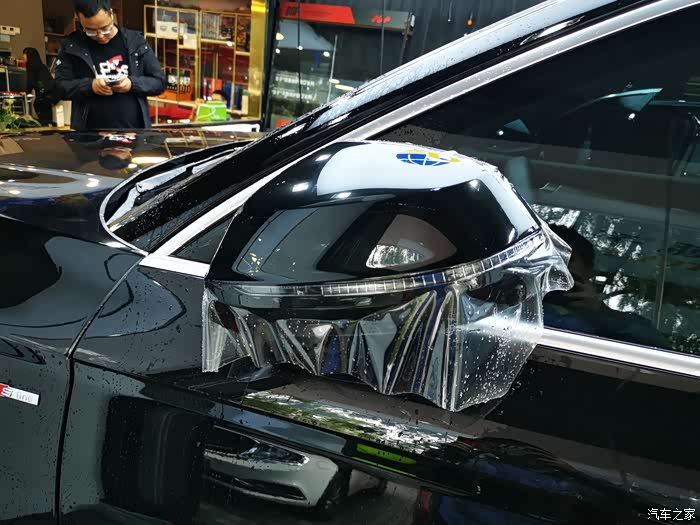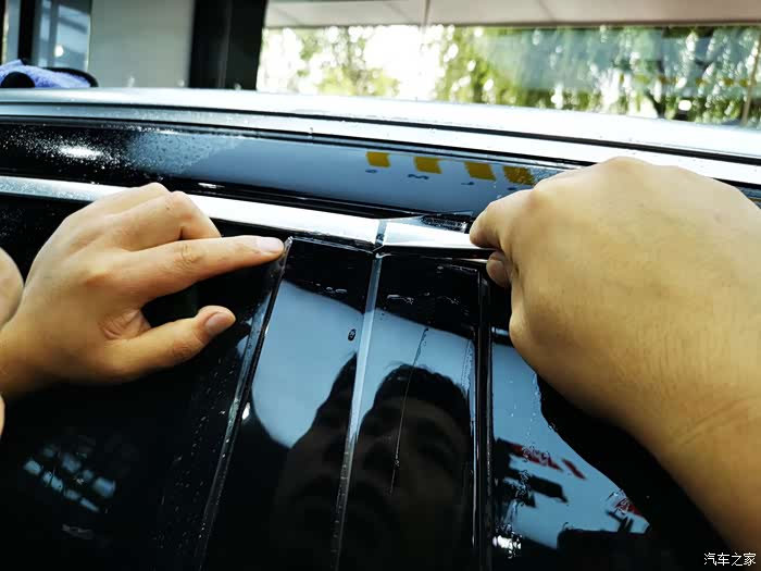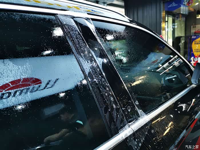 四个门边、后视镜、还有两侧的B柱都是送的贴膜保护,不过最近下雨,这个膜不知道会不会有影响。。。看后续,另外有质保也就不怕了。。。上图,先看看。。这也是技术活。。。