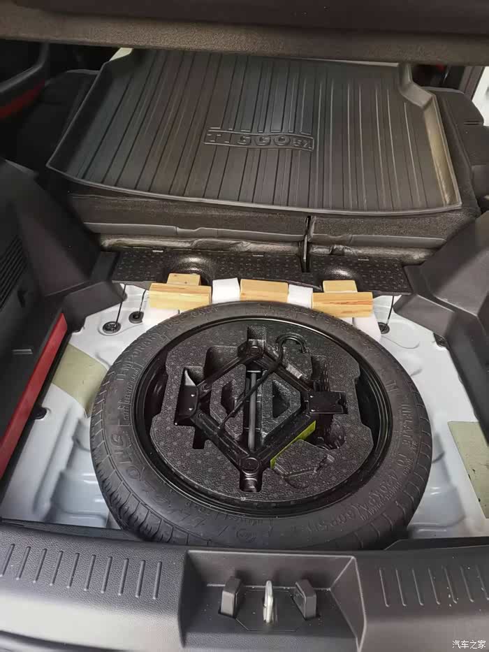 改床用到的部件收纳的情况,那几个小木块垫脚用的,正常行车时考虑放在备胎前面,自己用珍珠棉裁切了下,用来卡住木块不能随便移动。