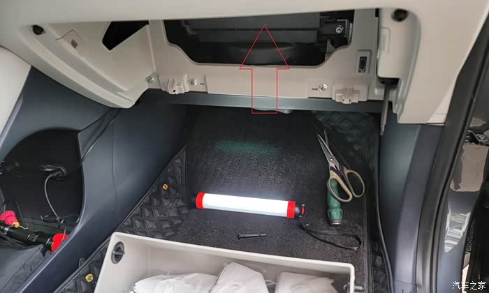 总览,如图,这是拆掉副驾驶手套箱的样子。