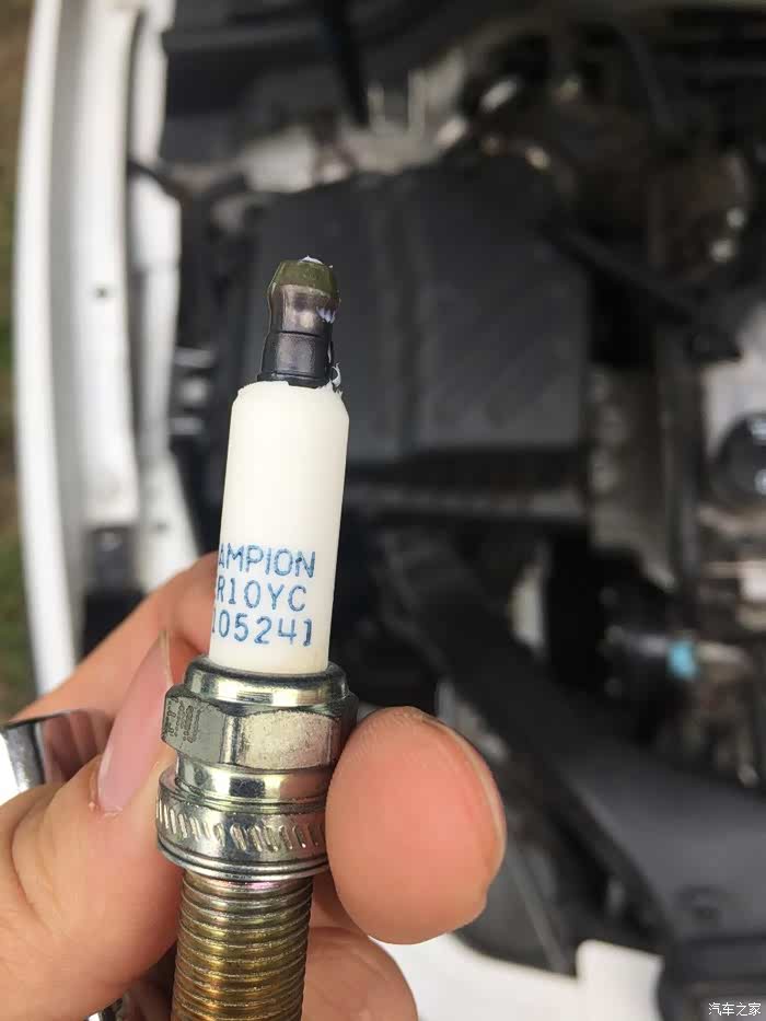 注意端口白色的是火花塞绝缘硅脂,建议大家更换的时候入手一个,我没有准备,就将原来的硅脂弄下来抹到新的火花塞上面