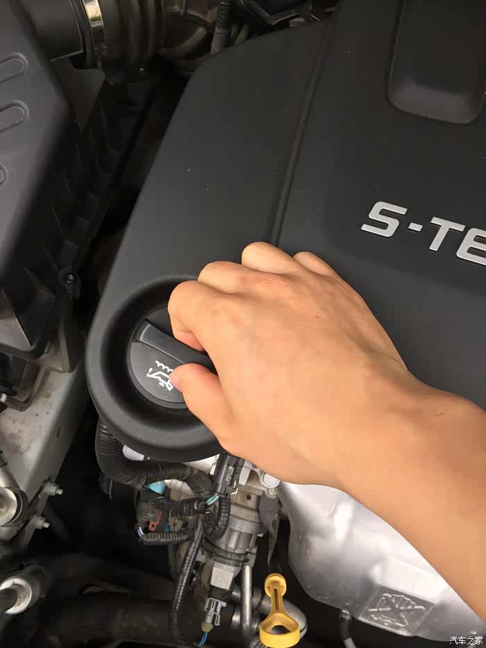 小心点,不要掉入发动机舱内,掉进去你就费半天时间去找,找不到就麻烦了