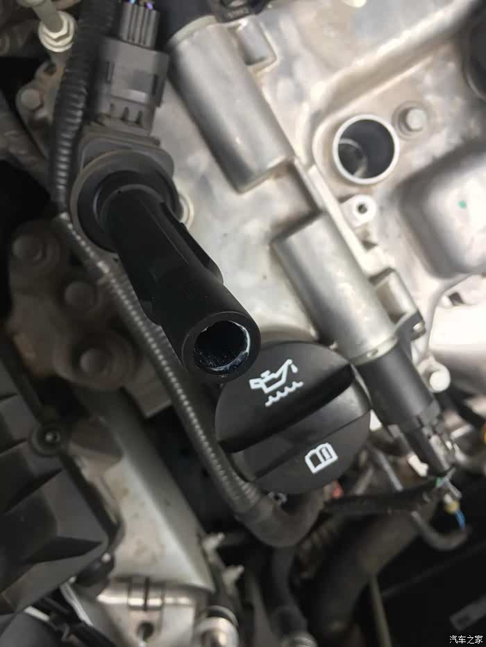 取下后,将机油加注口盖好,以免异物进入