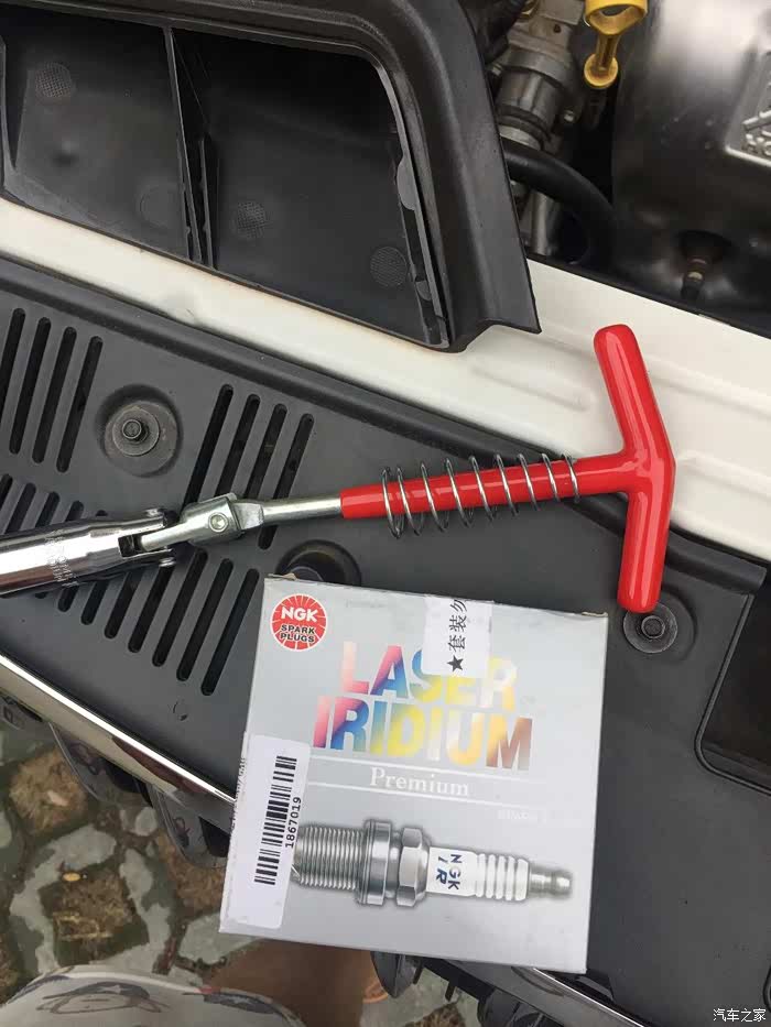 想了半天,就把后备箱换备胎的工具取下来用下,这样就能使上力气了,原厂的火花塞上的真紧,这都使了好大力才松开的