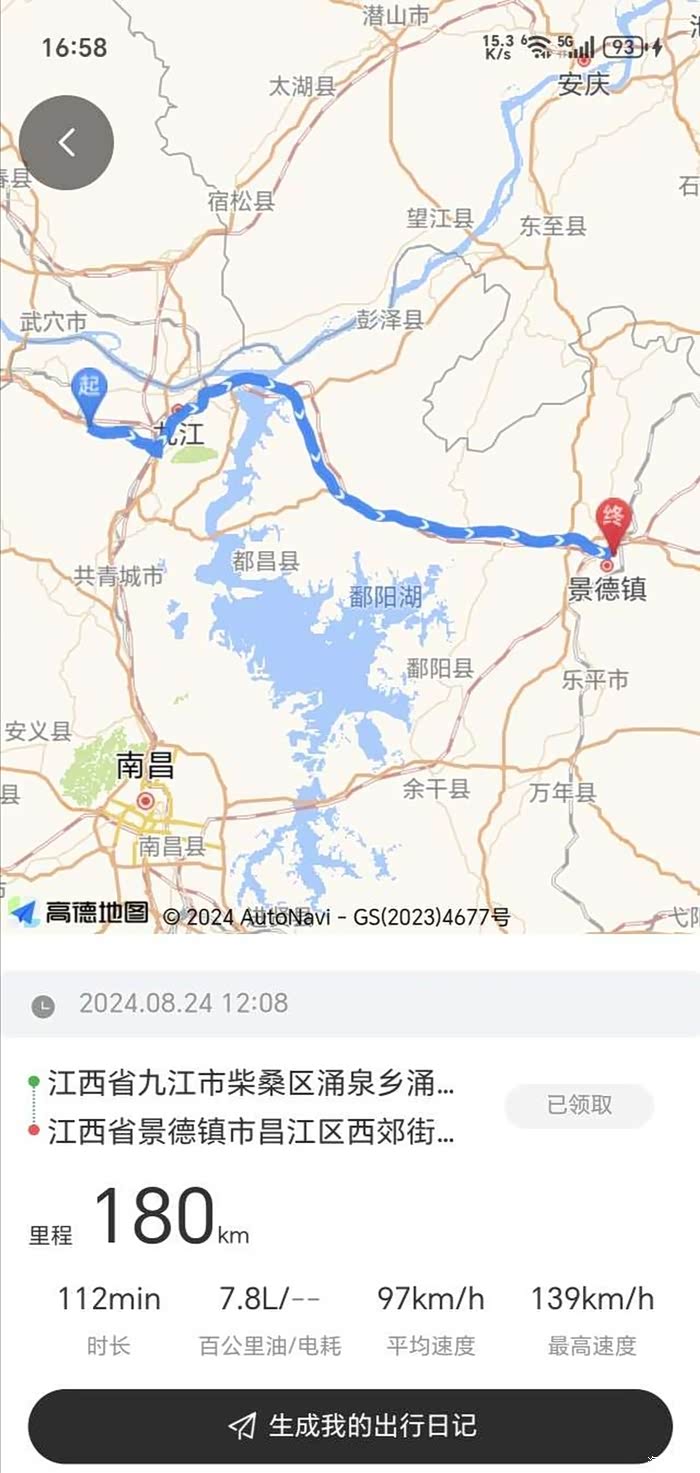 四、费用记录:表显油297km,电184km;用时6小时9分,油耗百公里4.8L,平均能耗油5.1+电2.1=5.7;跑了1050公里左右中间充了三次电,连电带加油花费290RMB左右,实现了动力与经济性的完美平衡。住宿200元上下浮动一晚,不贵。餐饮吃着江西的特色菜,每餐不到200元,门票几乎为零。三天两晚的景德镇之行总费用不到2000元,确实划算!