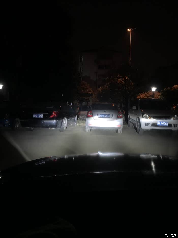 ,网上建议led灯泡要垂直地面安装,本人试了一下,垂直安装灯光有阴影,并且远光效果不好,平行地面安装时没有阴影,但是远光位置太高,散光。1.led垂直安装照片如下,对比了欧司朗,飞利浦,卡卡买,远大几个品牌。阴影面积欧司朗>卡卡买>飞利浦>远大。个人感觉这几家灯的亮度差不多。