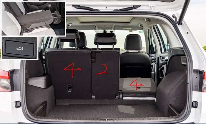 但是我觉得他是一个单向选择题,看似可上可下,其实一旦上去了,您底下放了东西了,就不会再下去了!哈哈。一般SUV 的垂直空间足够,不需要降下去。但是还是要为这个设计点赞!途观L,探岳,crv!!