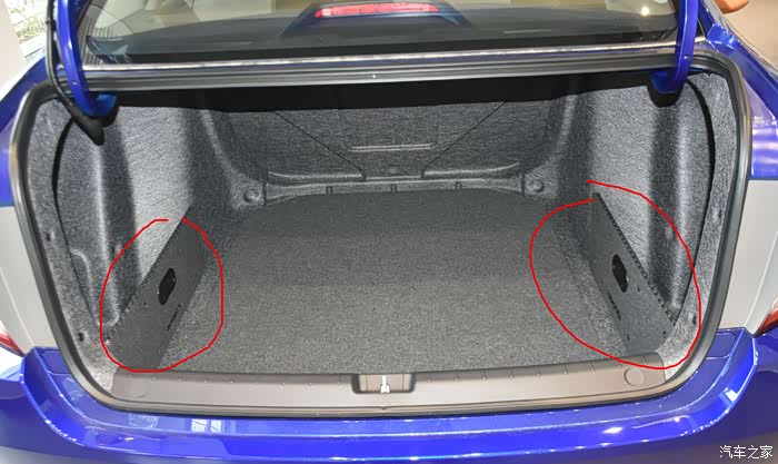 注意一下,这两个车子的后备箱开合机构,和上上个图中迈腾的区别,迈腾是包裹的,机构正下方也可以放东西。这两个正下方放东西,会顶住开合机构,导致关不上,这是不同级别车子的差距。