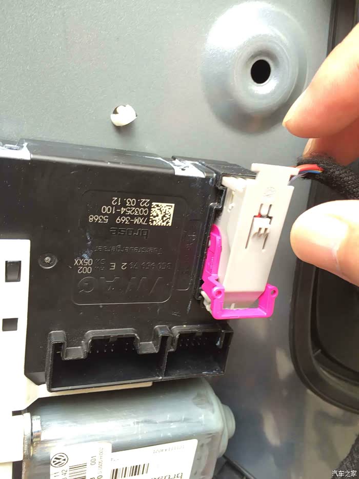 内门板。刚才忘了说了,车门下部有个门灯,下了。还有几个插头,也拔掉。